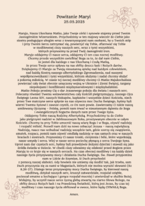 Za poprowadzenie całego czuwania odpowiedzialna była w tym roku Prowincja Krakowska. Poniżej przytaczamy modlitwę powitania i zawierzenia Maryi ułożoną przez s. Renatę Trzópek, prowincjalną krakowską.
